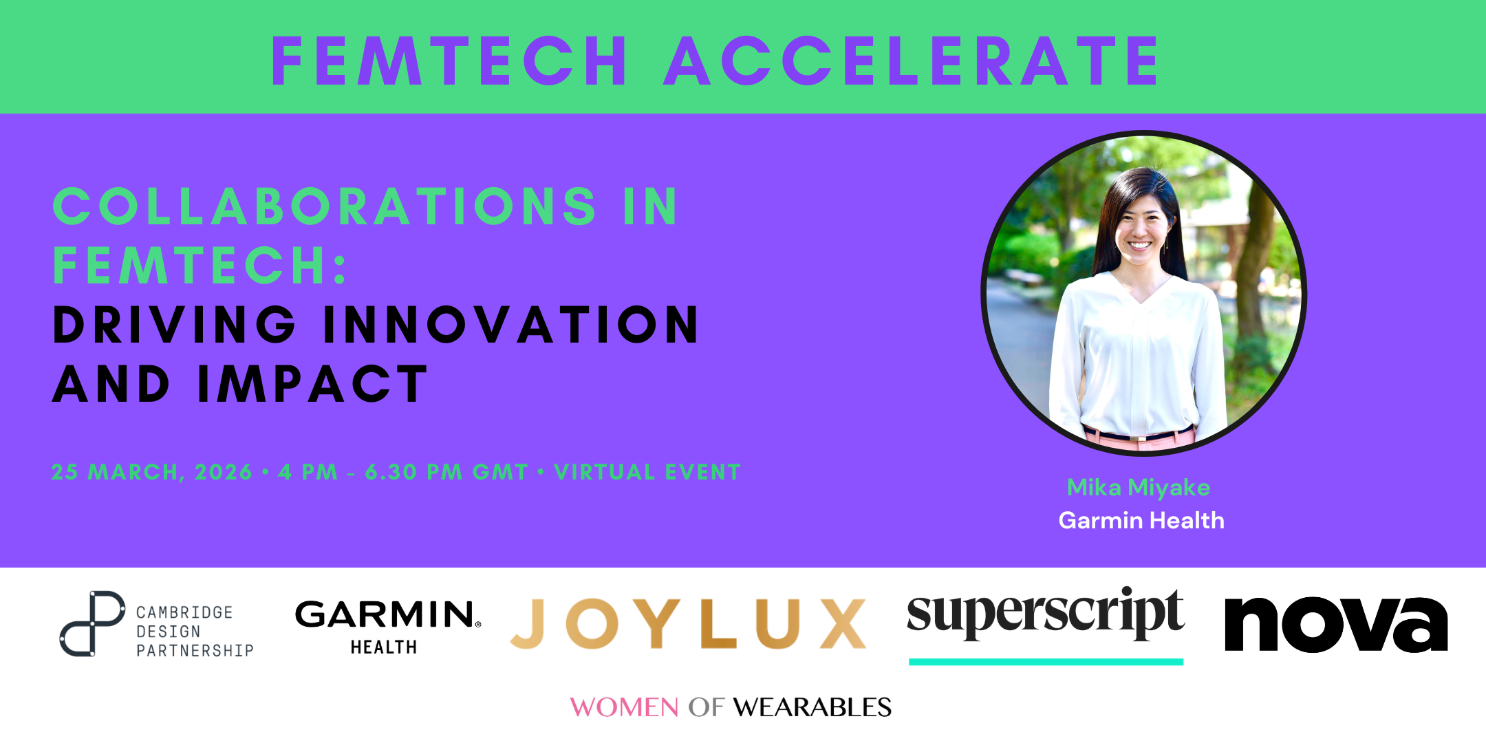 Mika Miyake is Garmin’s Health Business Development Manager, leading data-driven collaborations in Women’s Health topics globally and strategic business relationships in Employee Health/Wellness for the regions of Europe, the Middle East, Africa and India. She also launched the Garmin Health business in Japan before moving to Germany. Before Garmin, she dedicated her career to health science business planning and employee wellness promotion, achieving positive behavior change for many through innovative approaches. Her passion for sports extended her experience to include work at international sporting events. Mika has lived and studied in the U.S. and Australia. Her academic background is in Psychology, Health and Exercise Science, and Public Health. She was selected as one of “200 Trailblazing Leaders in Women’s Health and FemTech 2025” by Women of Wearables.
